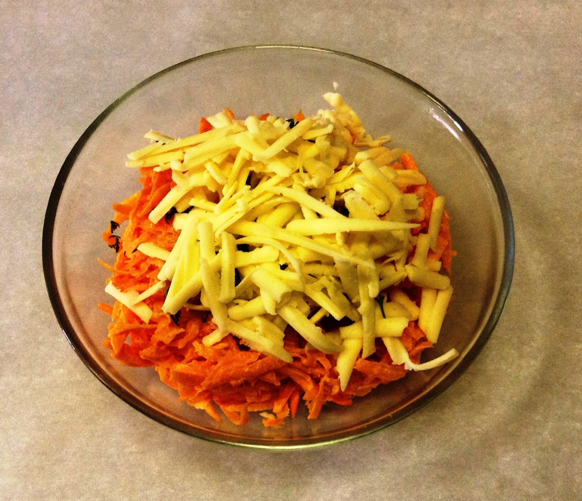 МОРКОВНЫЙ С ЧЕСНОКОМ, ТЕРТЫМ СЫРОМ И МАЙОНЕЗОМ (150 ГР.)