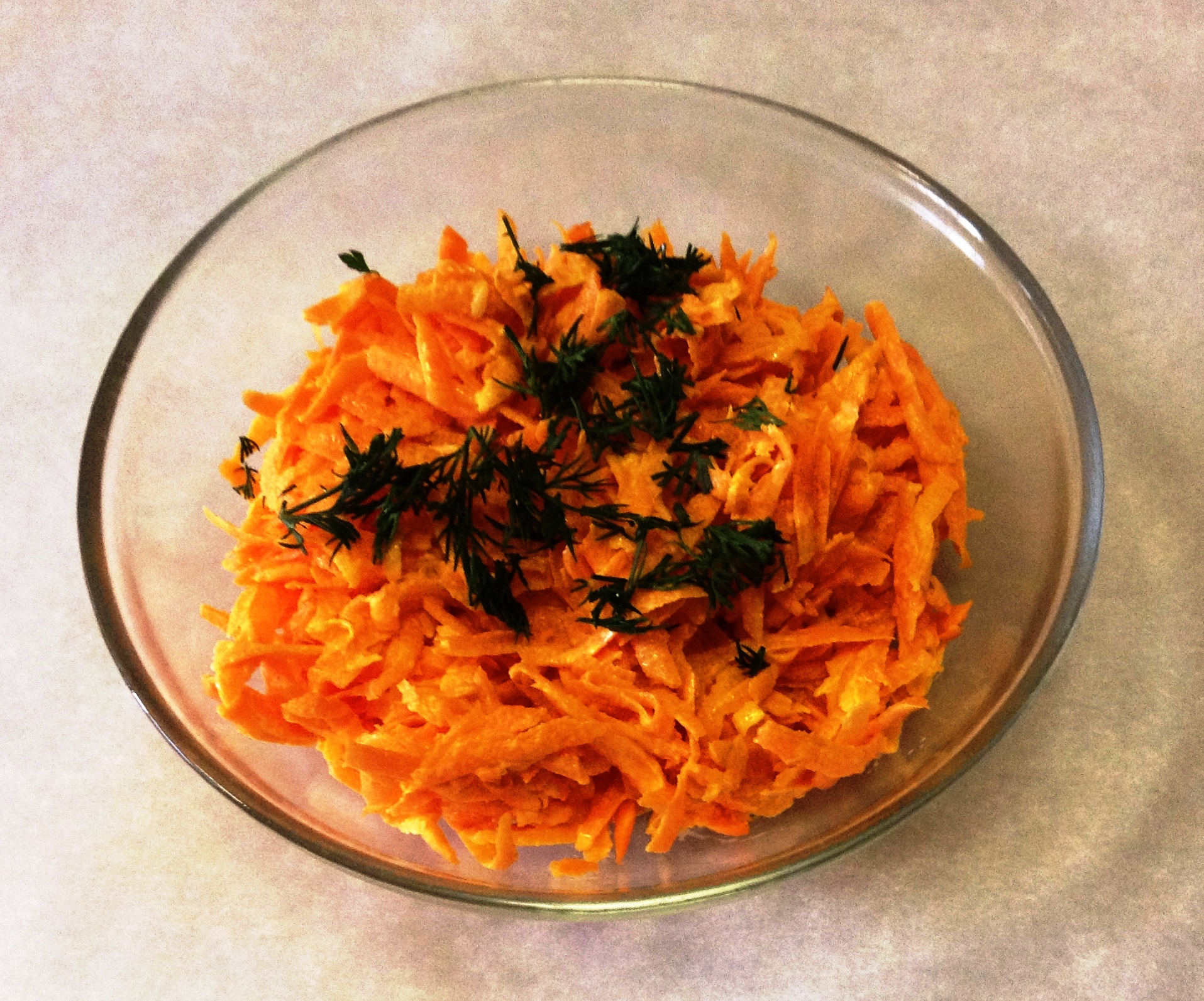 ТЕРТАЯ МОРКОВЬ С ЧЕСНОКОМ И МАЙОНЕЗОМ (150 ГР.)